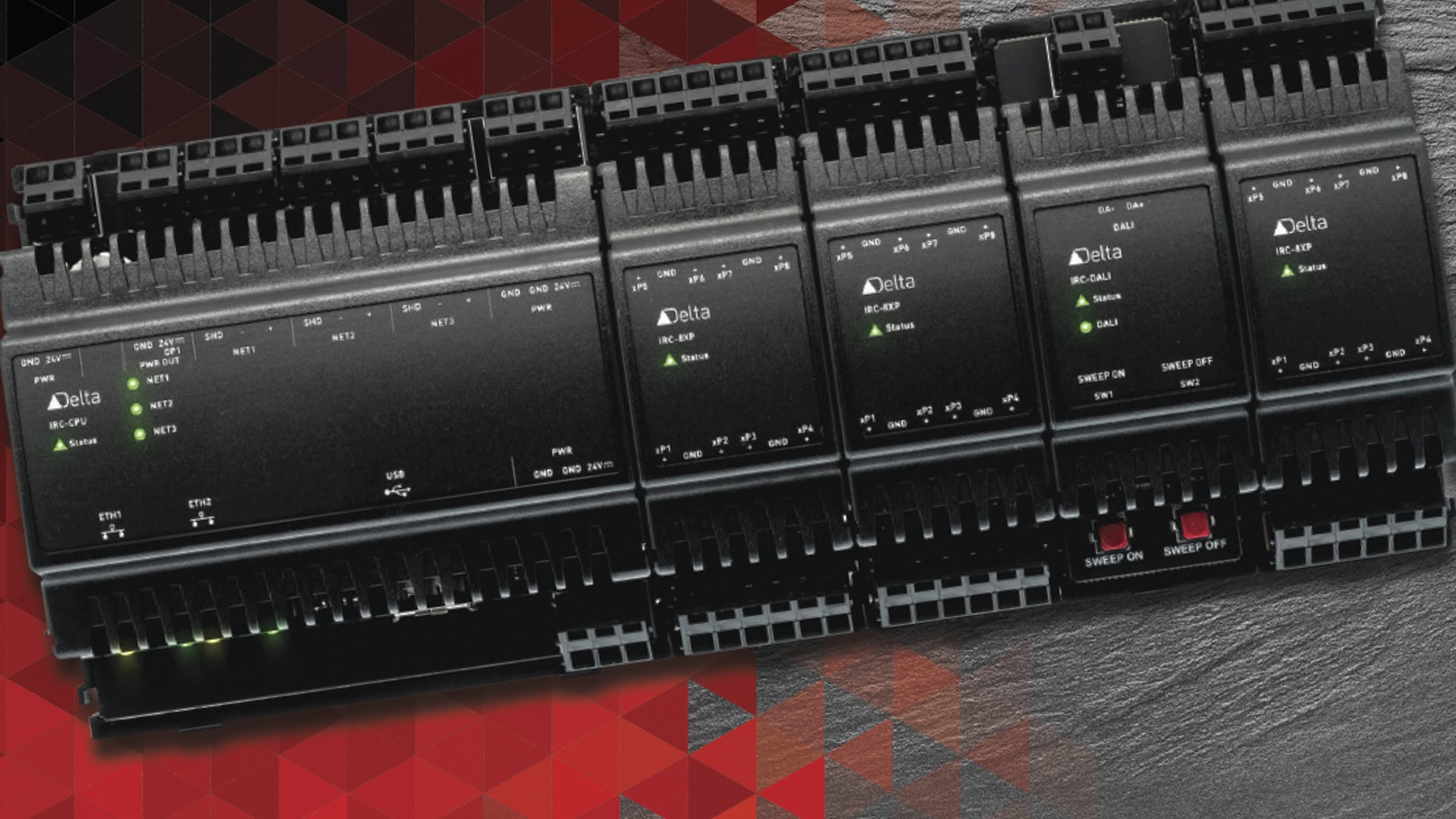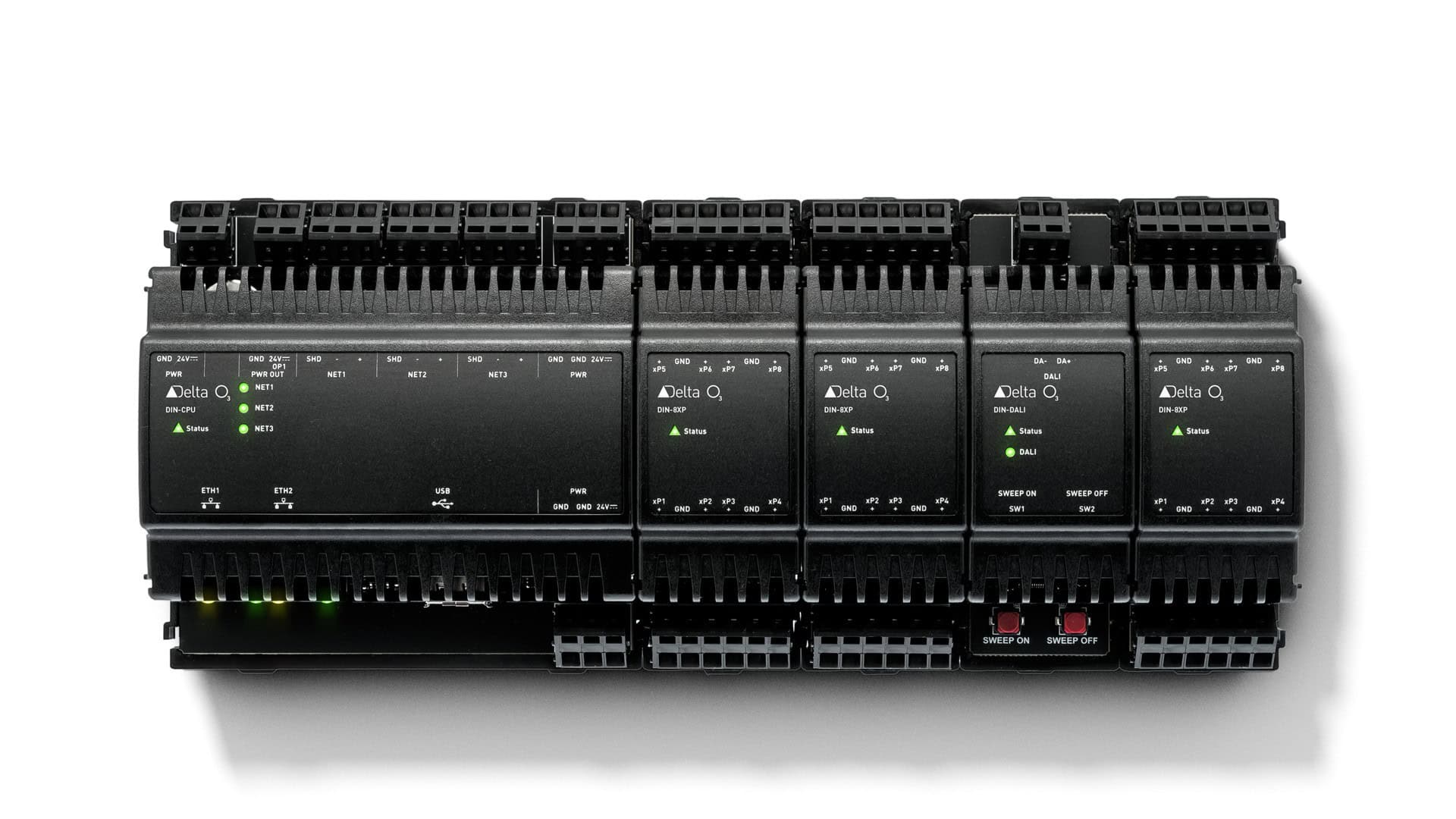 Die Red5 Raumcontroller sind ist eine vollständige Automationslösung für die Raumautomation. Der Red5 Raumcontroller nimmt alle in der Raumautomation üblichen Technologien, wie DALI, SMI und Modbus RTU direkt und über Erweiterungs-Module auf. Auf DIN-Schiene eingesetzt in Standard Elektroverteilern übernimmt das System alle Aufgaben der Raumautomation, wie Klimatisierung, Beleuchtung, Beschattung und auch Zutrittskontrolle. Der Red5 Raumcontroller kann mit dem O3 Sensor-Hub (Sensorfusion) alle Automationsaufgaben in der Fläche übernehmen.
